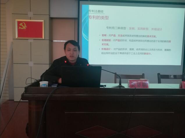 咸宁市知识产权局专家吴显鹏为大家作专利基础知识及有关政策解读的PPT讲座,主要围绕专利基础知识、专利费用减缴和有关政策包括湖北省专利条例、专利奖励政策、申报主要平台和专利申报途径。接着,李志宏对专利政策、申报技巧作了进一步阐述。